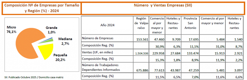 Además, el reporte indica que la provincia aporta con 86.756 trabajadores dependientes informados, dentro de un total regional de 675.886, según cifras del Servicio de Impuestos Internos correspondientes a octubre de 2025. Estos datos reflejan la relevancia de San Antonio dentro del mercado laboral regional.